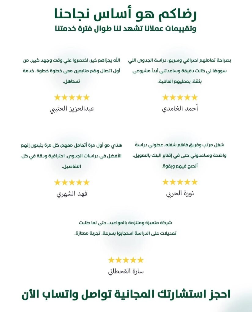 يعني تستلم ملف متكامل “يبيّض الوجه” سواء بتقدمه لبنك، جهة تمويلية، أو حتى بتعرضه على شريك أو مستثمر.