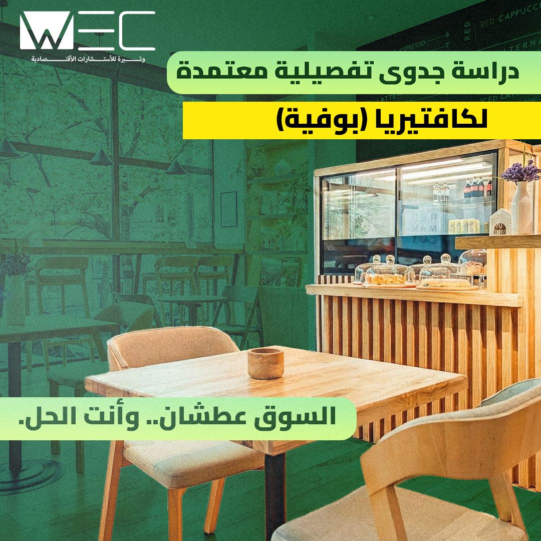 “السوق عطشان.. وأنت الحل”! هل تبحث عن فرصة استثمارية يومية ومضمونة؟ مشروع الكافتيريا (البوفية) هو الإجابة. لا تضيع وقتك في التخمين، نقدم لك دراسة جدوى تفصيلية ومعتمدة تضعك على الطريق الصحيح. نغطي لك كافة الجوانب من اختيار الموقع والديكور الجذاب إلى تحديد قائمة الطعام المناسبة والتحليل المالي لضمان ربحيتك. اغتنم فرصة الطلب المتزايد وابدأ مشروعك الناجح الآن.